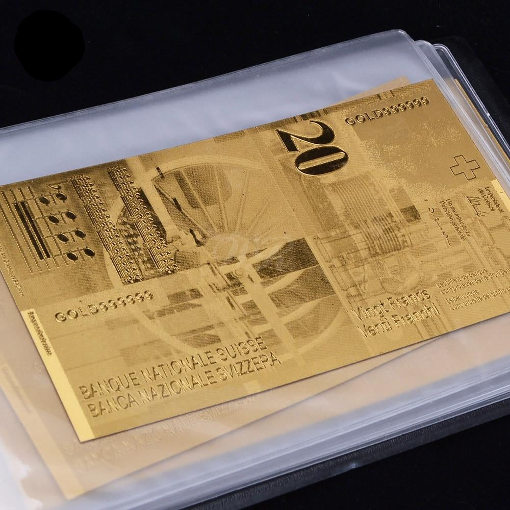 Golden Replica Of Full Set Swiss Franc Golden Banknotes in Leather Wallet